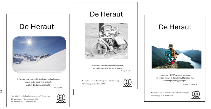 Op verzoek kan De Heraut in pdf toegezonden worden. Stuurt u hiervoor een berichtje naar heraut@baptistengemeentescheveningen.nl